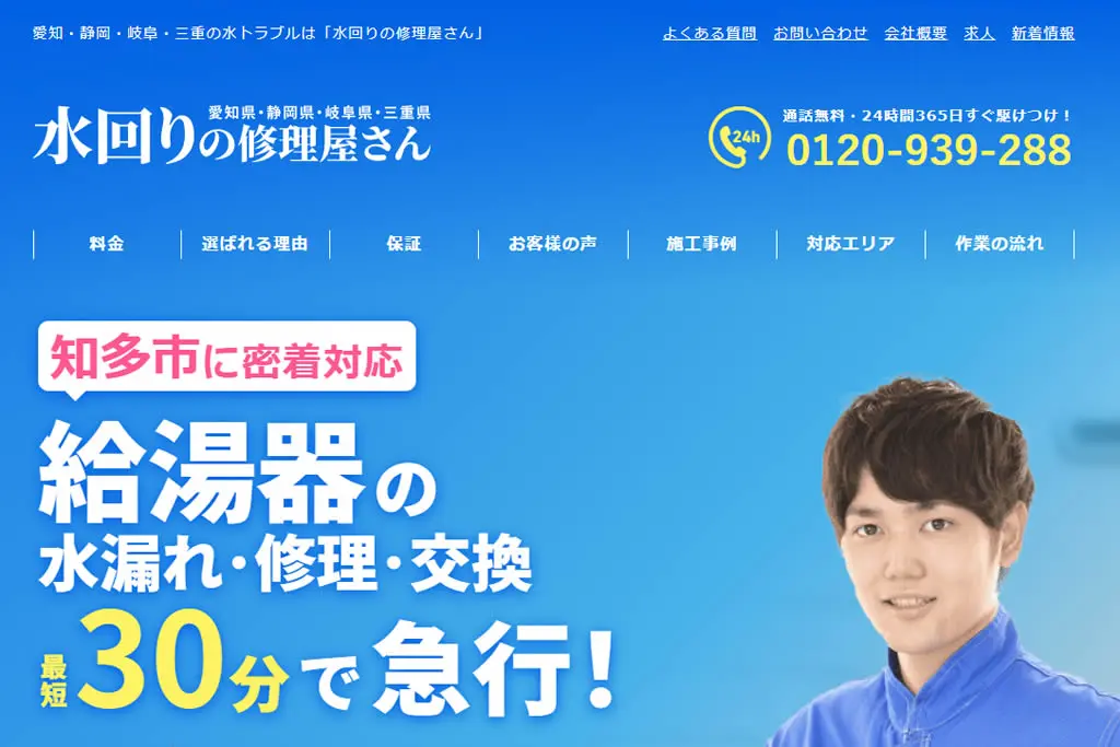 24時間365日年中無休で、名古屋市や豊田市、岡崎市など一部エリアは最短即日対応です。早朝や夜間の給湯器トラブルにも対応してもらえるので心強いです。