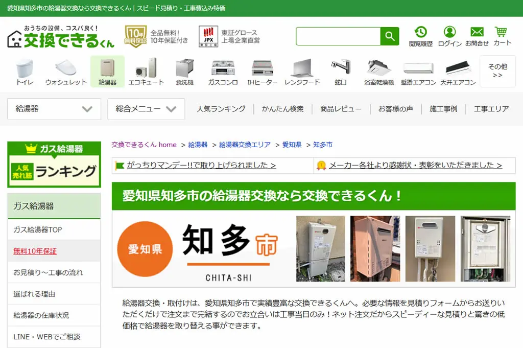 2025年5月にガス給湯器174機種の価格を平均17,035円値下げしており、交渉なしでの低価格を強みとしています。