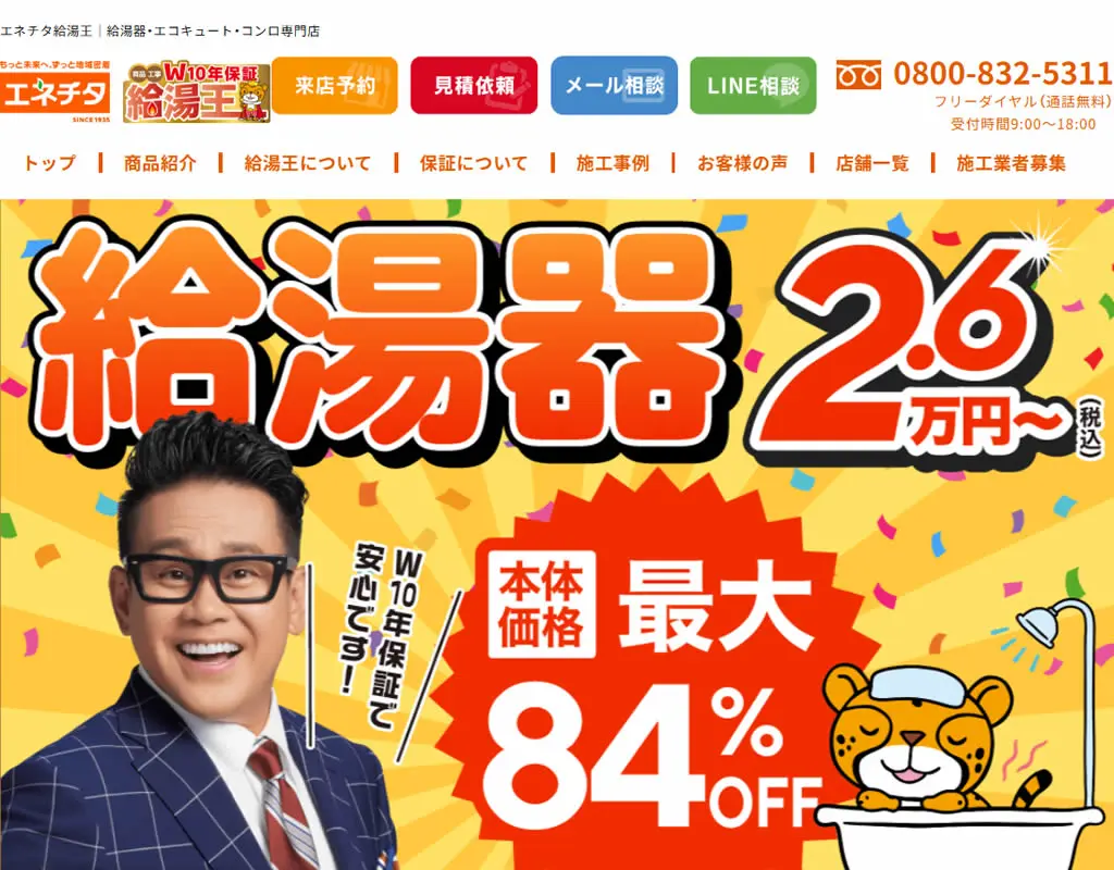 2025年5月にガス給湯器174機種の価格を平均17,035円値下げしており、交渉なしでの低価格を強みとしています。