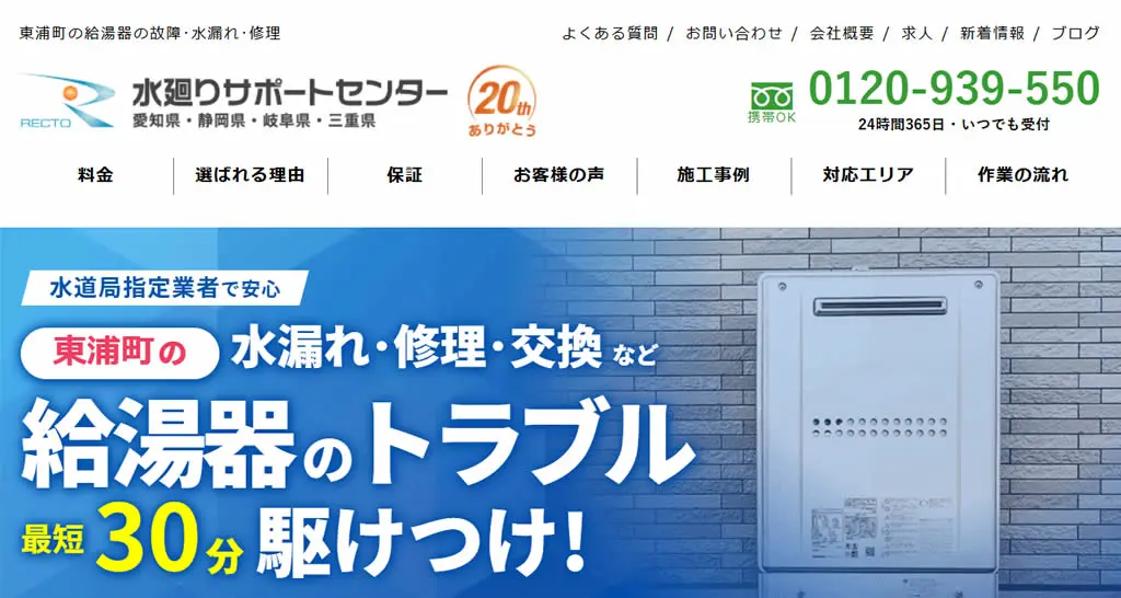 24時間365日年中無休で、名古屋市や豊田市、岡崎市など一部エリアは最短即日対応です。早朝や夜間の給湯器トラブルにも対応してもらえるので心強いです。