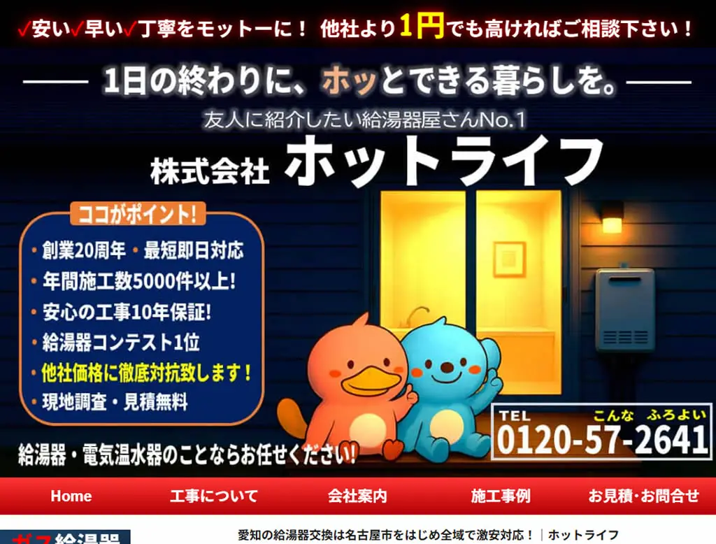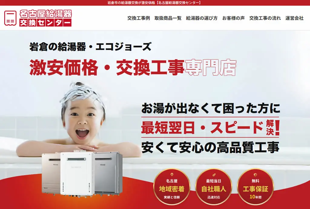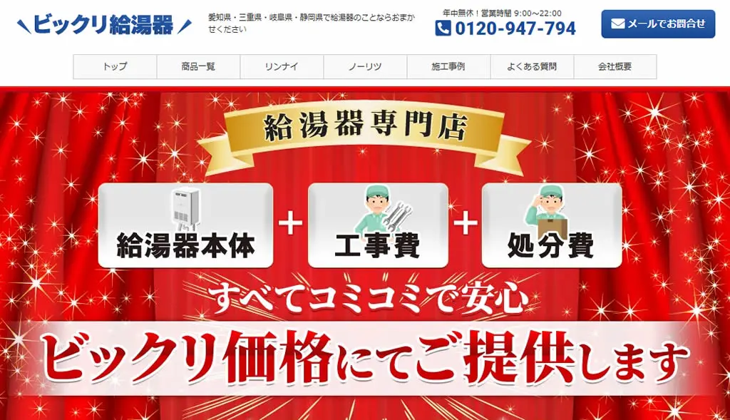 2025年5月にガス給湯器174機種の価格を平均17,035円値下げしており、交渉なしでの低価格を強みとしています。