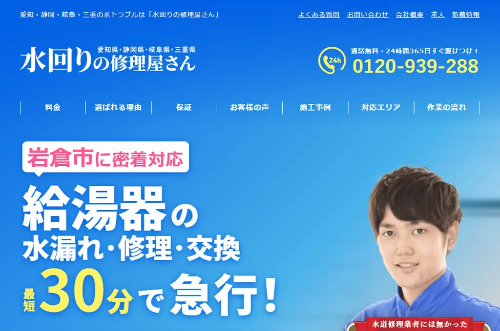 24時間365日年中無休で、名古屋市や豊田市、岡崎市など一部エリアは最短即日対応です。早朝や夜間の給湯器トラブルにも対応してもらえるので心強いです。