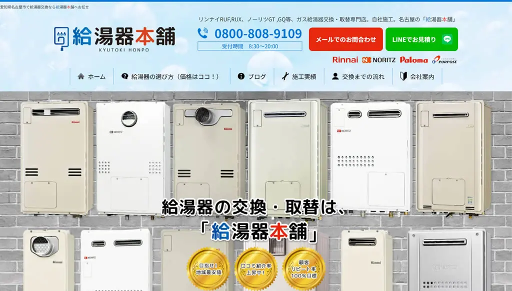 給湯器三大メーカーのリンナイ・ノーリツ・パロマの正規販売店なので、給湯器交換が初めての方でも安心して依頼できます。