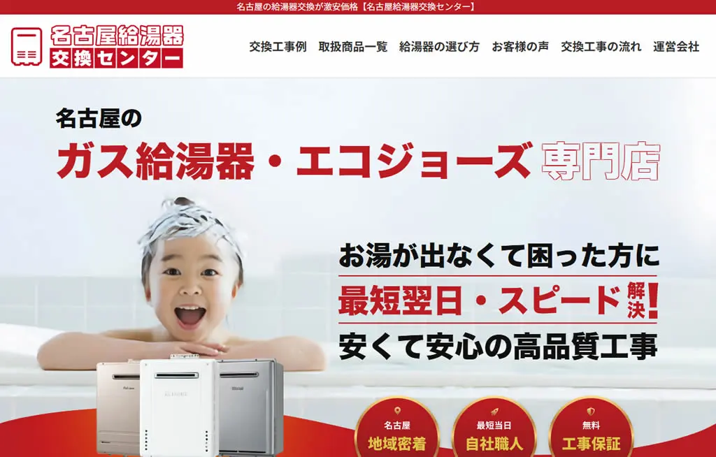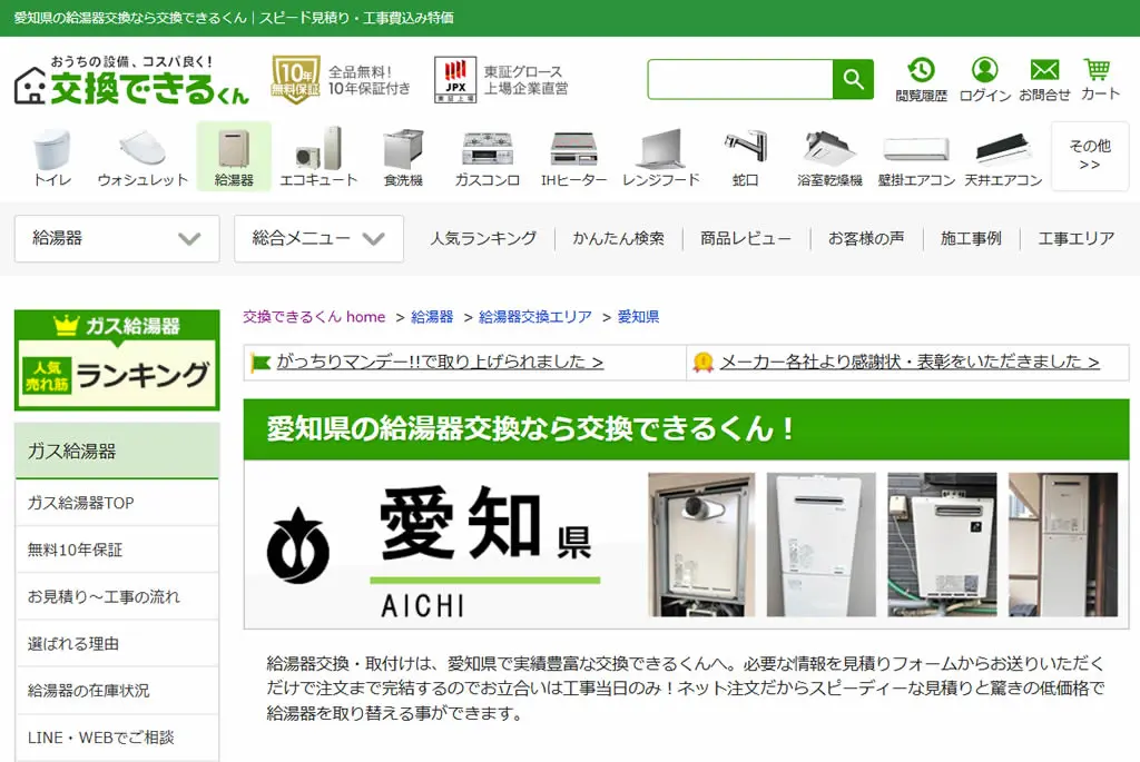 2025年5月にガス給湯器174機種の価格を平均17,035円値下げしており、交渉なしでの低価格を強みとしています。