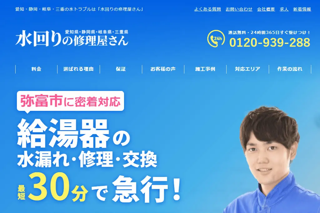 24時間365日年中無休で、名古屋市や豊田市、岡崎市など一部エリアは最短即日対応です。早朝や夜間の給湯器トラブルにも対応してもらえるので心強いです。