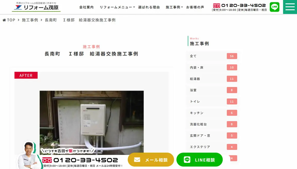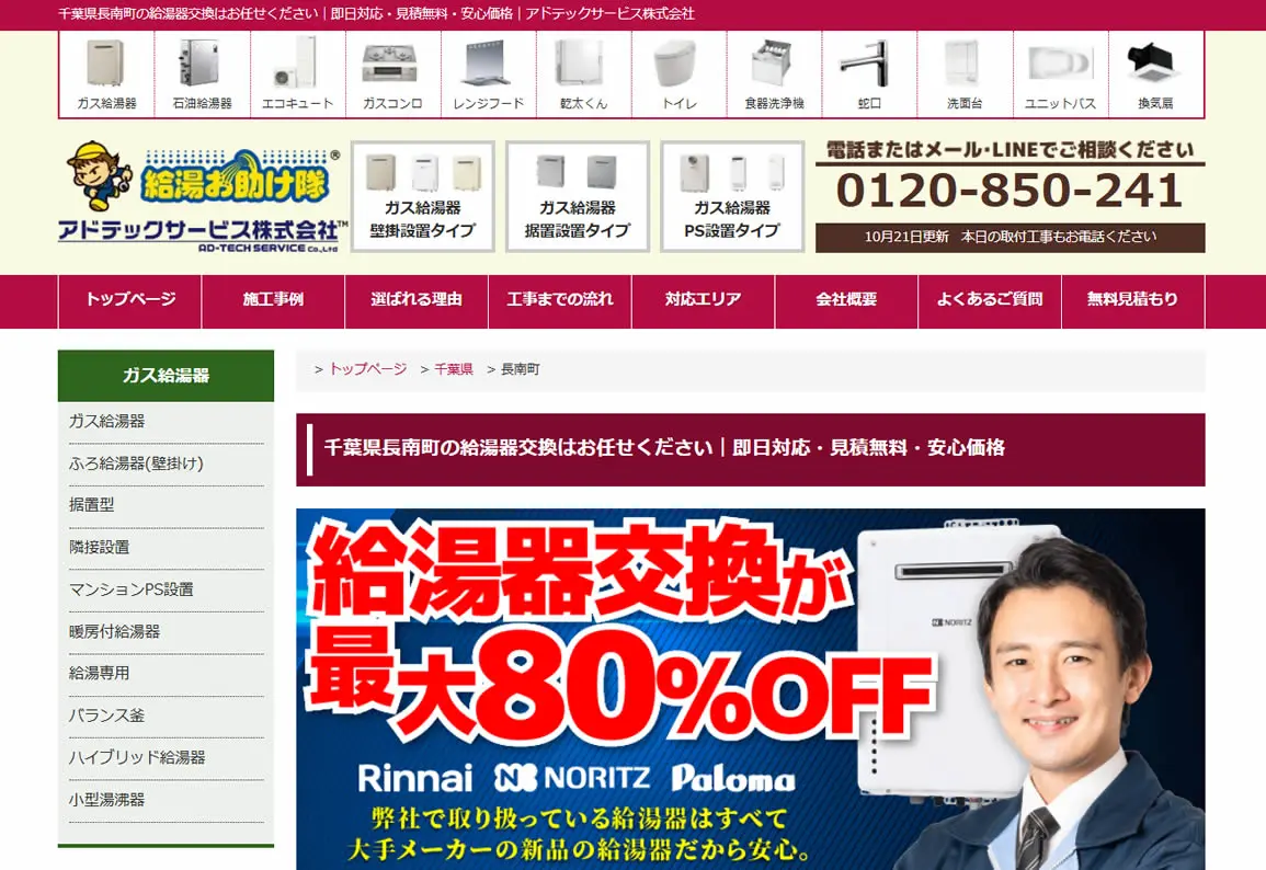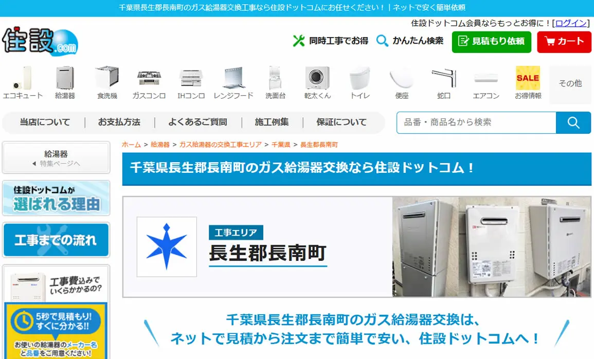 2025年5月にガス給湯器174機種の価格を平均17,035円値下げしており、交渉なしでの低価格を強みとしています。