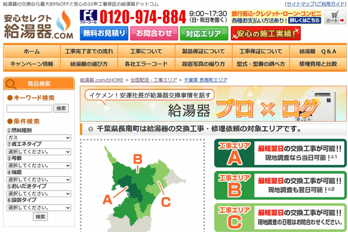 ガス給湯器が最大92%オフになるので、工事費用を抑えたい方に最適です。千葉県全域に対応しており、即日対応が可能なので、「給湯器にエラーコードが出た」などのトラブルも迅速に解決できます。