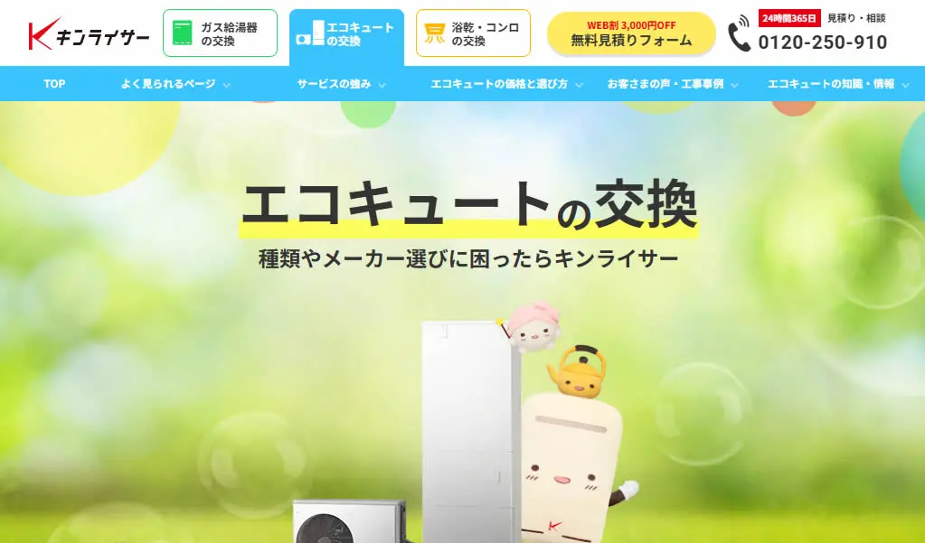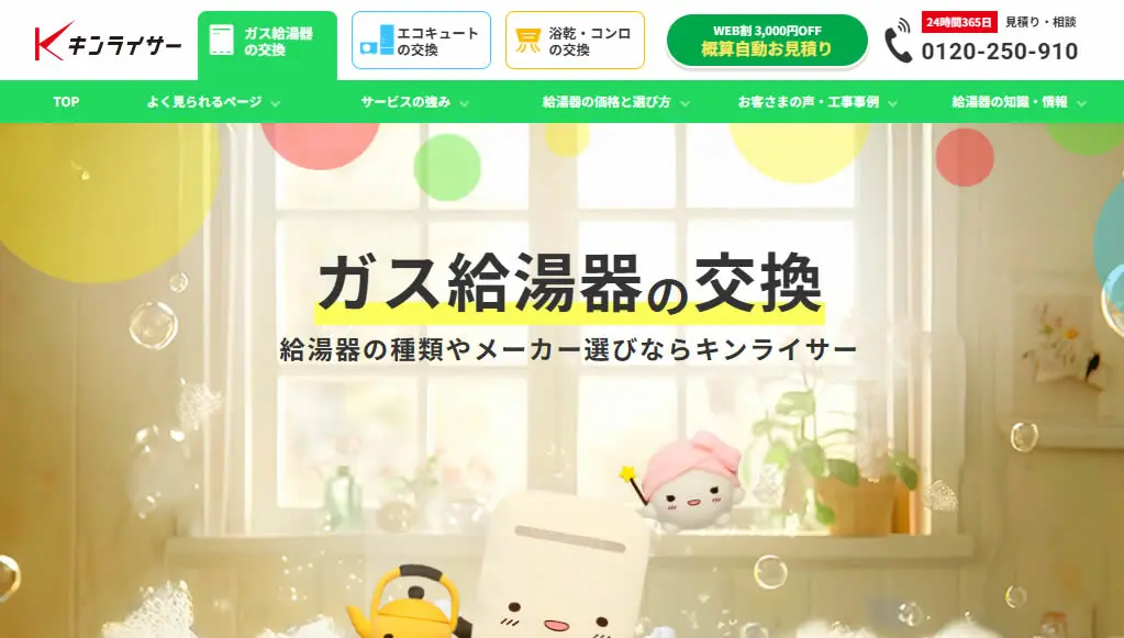 キンライサーは、株式会社キンライサーが運営する、給湯器交換専門業者です。