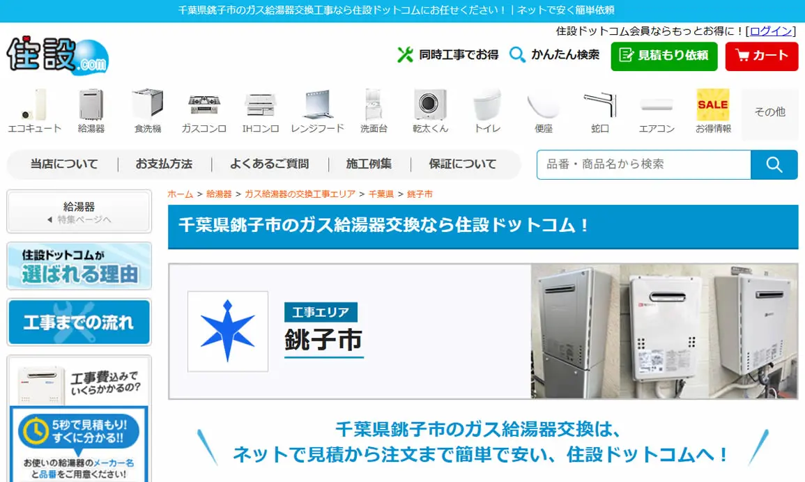 2025年5月にガス給湯器174機種の価格を平均17,035円値下げしており、交渉なしでの低価格を強みとしています。