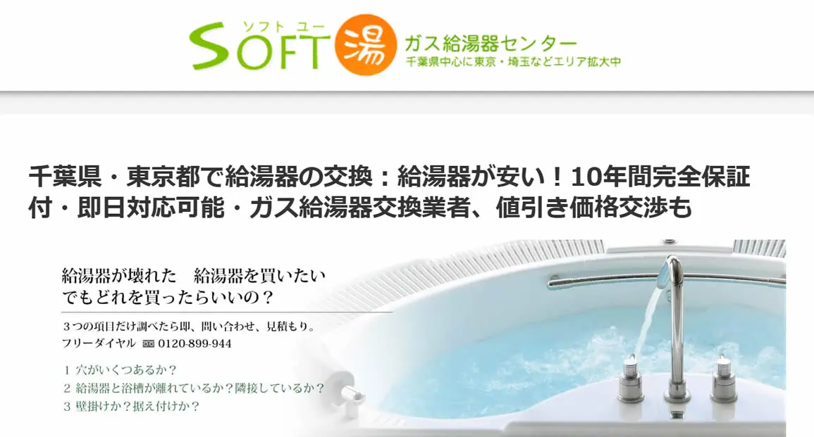 ガス給湯器が最大92%オフになるので、工事費用を抑えたい方に最適です。千葉県全域に対応しており、即日対応が可能なので、「給湯器にエラーコードが出た」などのトラブルも迅速に解決できます。
