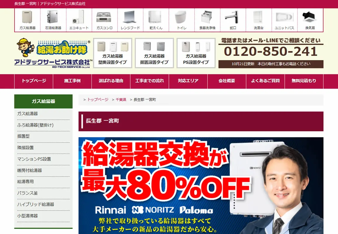 2025年5月にガス給湯器174機種の価格を平均17,035円値下げしており、交渉なしでの低価格を強みとしています。