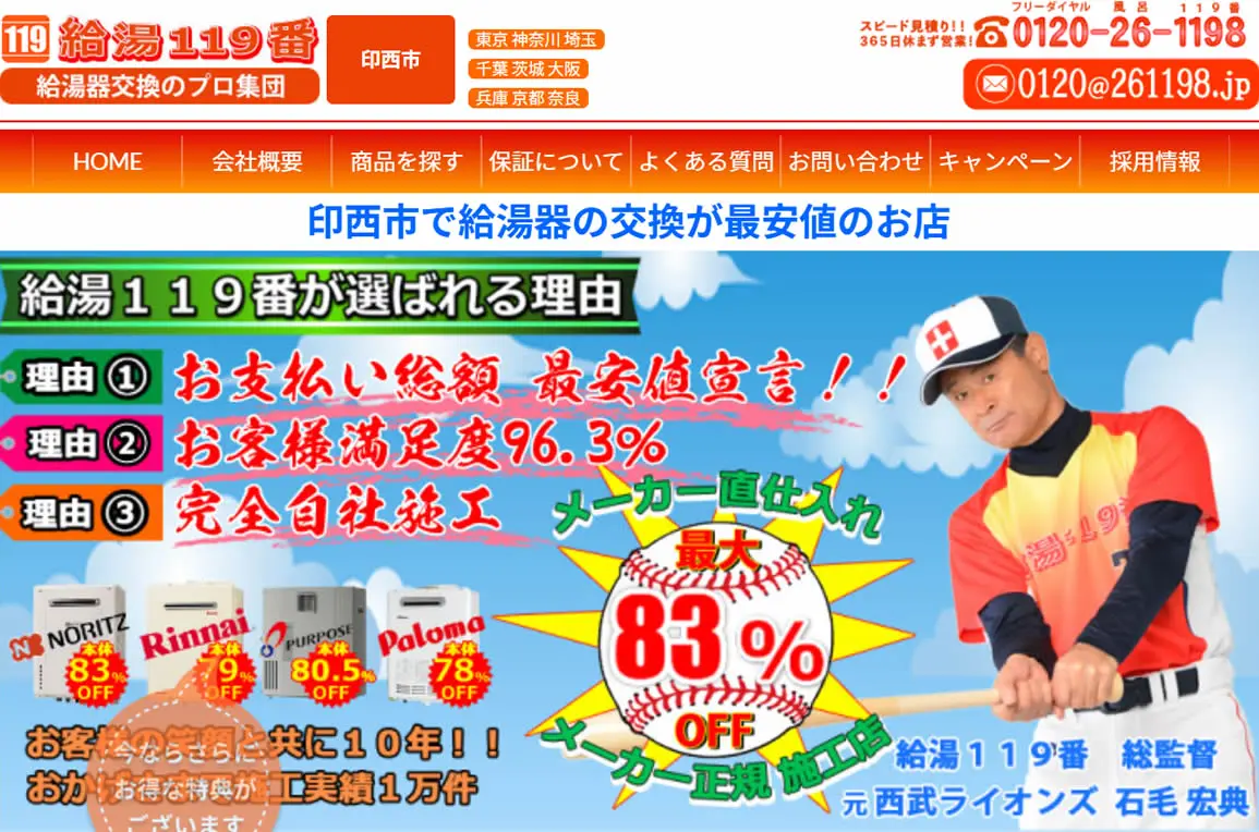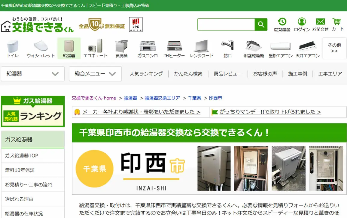2025年5月にガス給湯器174機種の価格を平均17,035円値下げしており、交渉なしでの低価格を強みとしています。