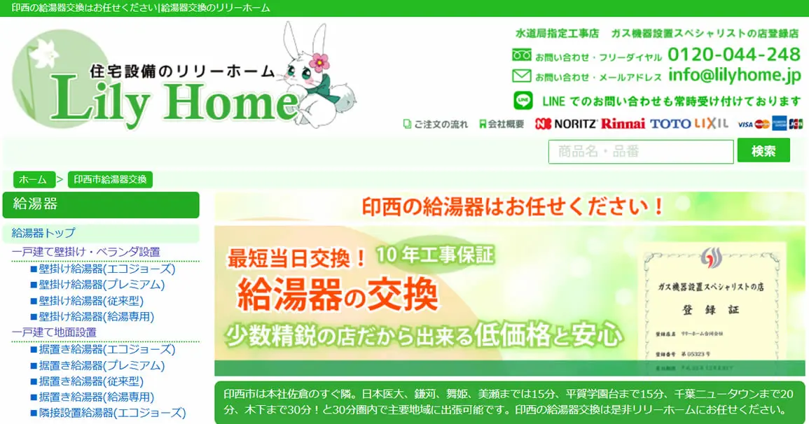 給湯器三大メーカーのリンナイ・ノーリツ・パロマの正規販売店なので、給湯器交換が初めての方でも安心して依頼できます。
