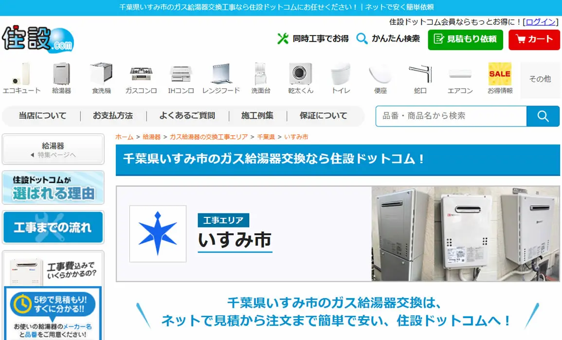 2025年5月にガス給湯器174機種の価格を平均17,035円値下げしており、交渉なしでの低価格を強みとしています。