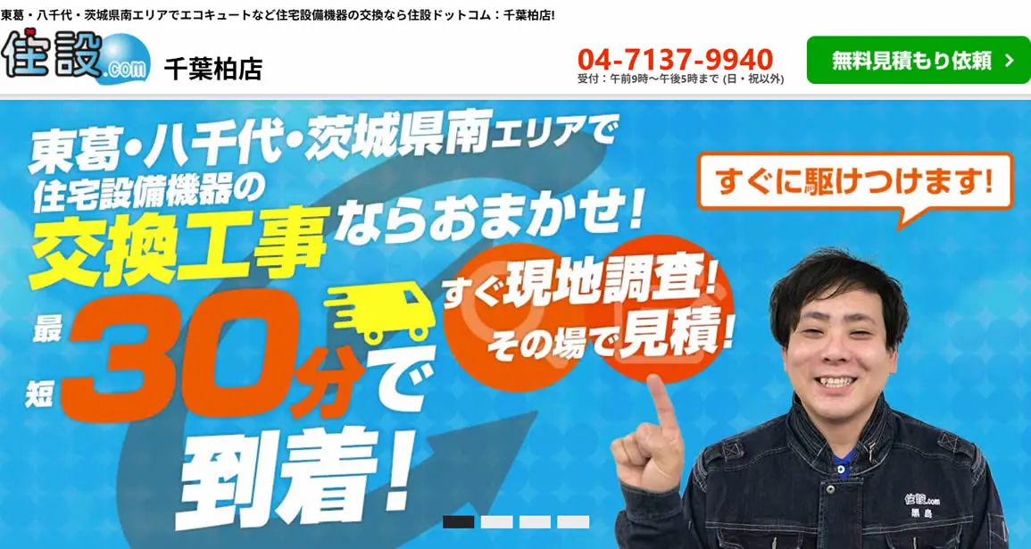 スマホから簡単に見積もり依頼ができ、最短当日に見積もり回答や訪問が可能です。給湯器が急に故障した場合も安心です。