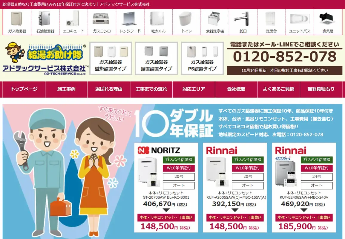 2025年5月にガス給湯器174機種の価格を平均17,035円値下げしており、交渉なしでの低価格を強みとしています。