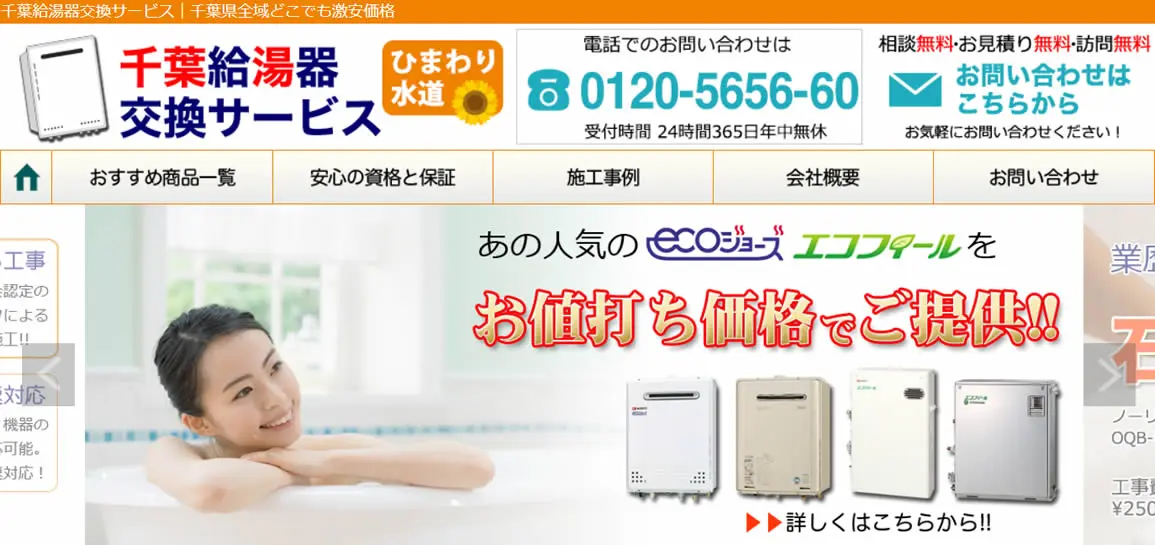 ガス給湯器が最大92%オフになるので、工事費用を抑えたい方に最適です。千葉県全域に対応しており、即日対応が可能なので、「給湯器にエラーコードが出た」などのトラブルも迅速に解決できます。
