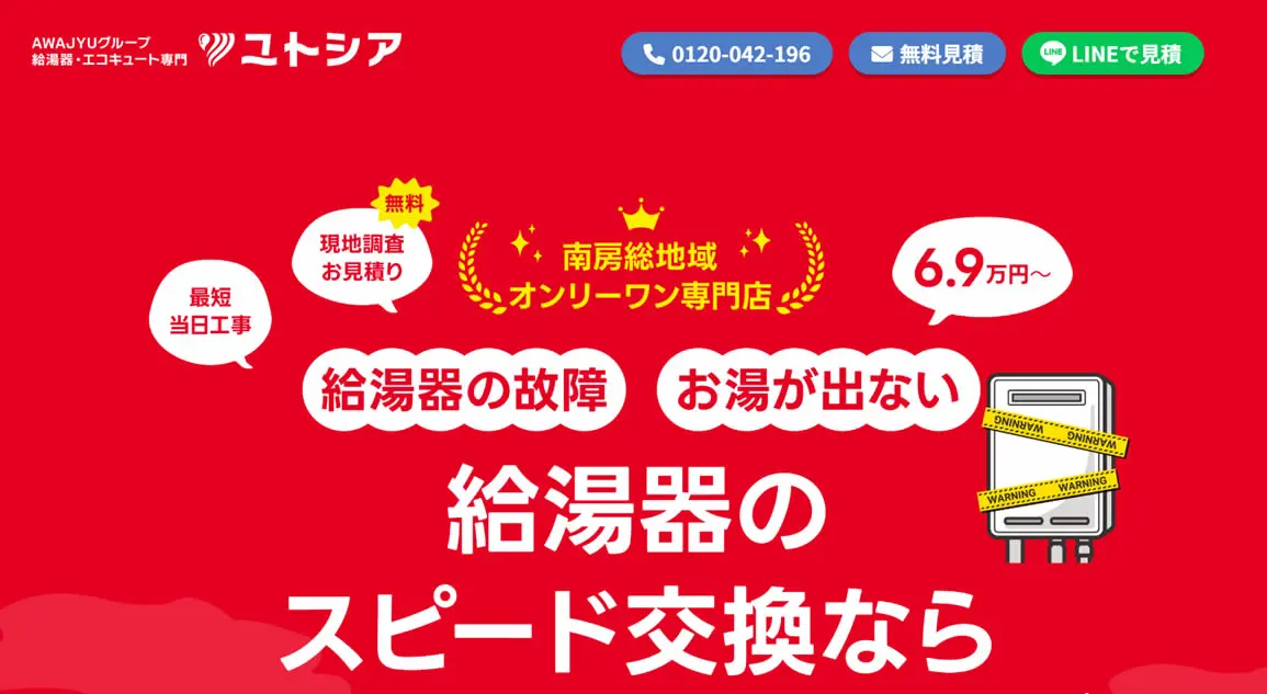 ガス給湯器が最大92%オフになるので、工事費用を抑えたい方に最適です。千葉県全域に対応しており、即日対応が可能なので、「給湯器にエラーコードが出た」などのトラブルも迅速に解決できます。