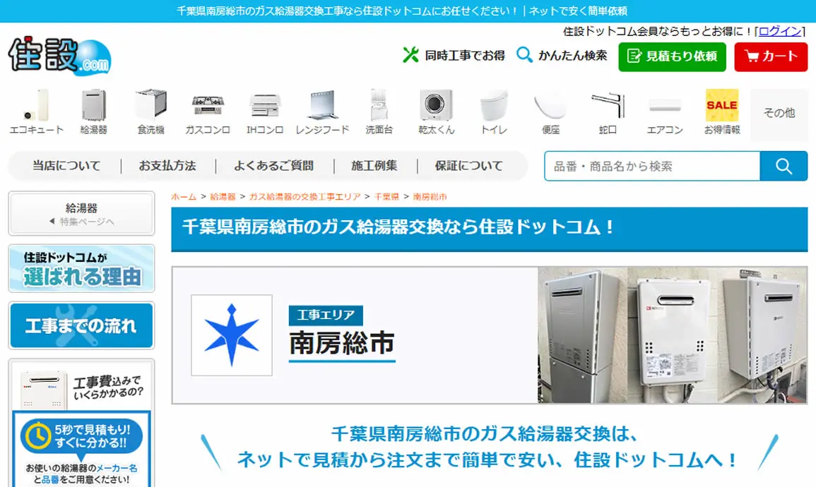 2025年5月にガス給湯器174機種の価格を平均17,035円値下げしており、交渉なしでの低価格を強みとしています。