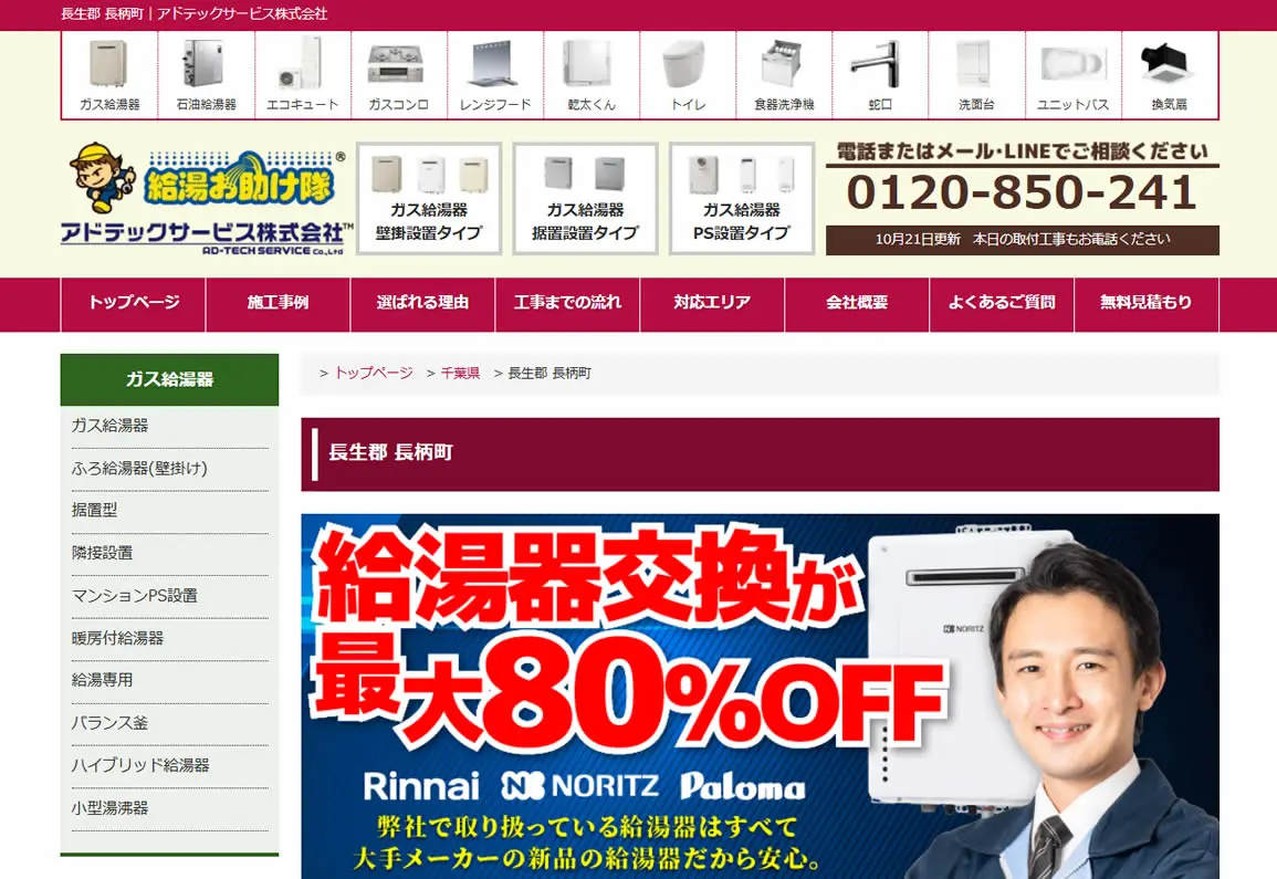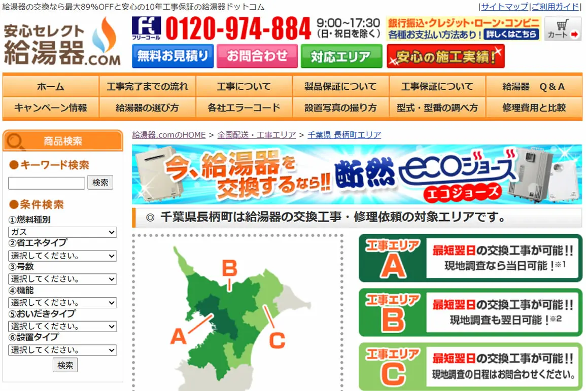 2025年5月にガス給湯器174機種の価格を平均17,035円値下げしており、交渉なしでの低価格を強みとしています。