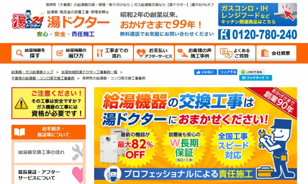 ガス給湯器が最大92%オフになるので、工事費用を抑えたい方に最適です。千葉県全域に対応しており、即日対応が可能なので、「給湯器にエラーコードが出た」などのトラブルも迅速に解決できます。