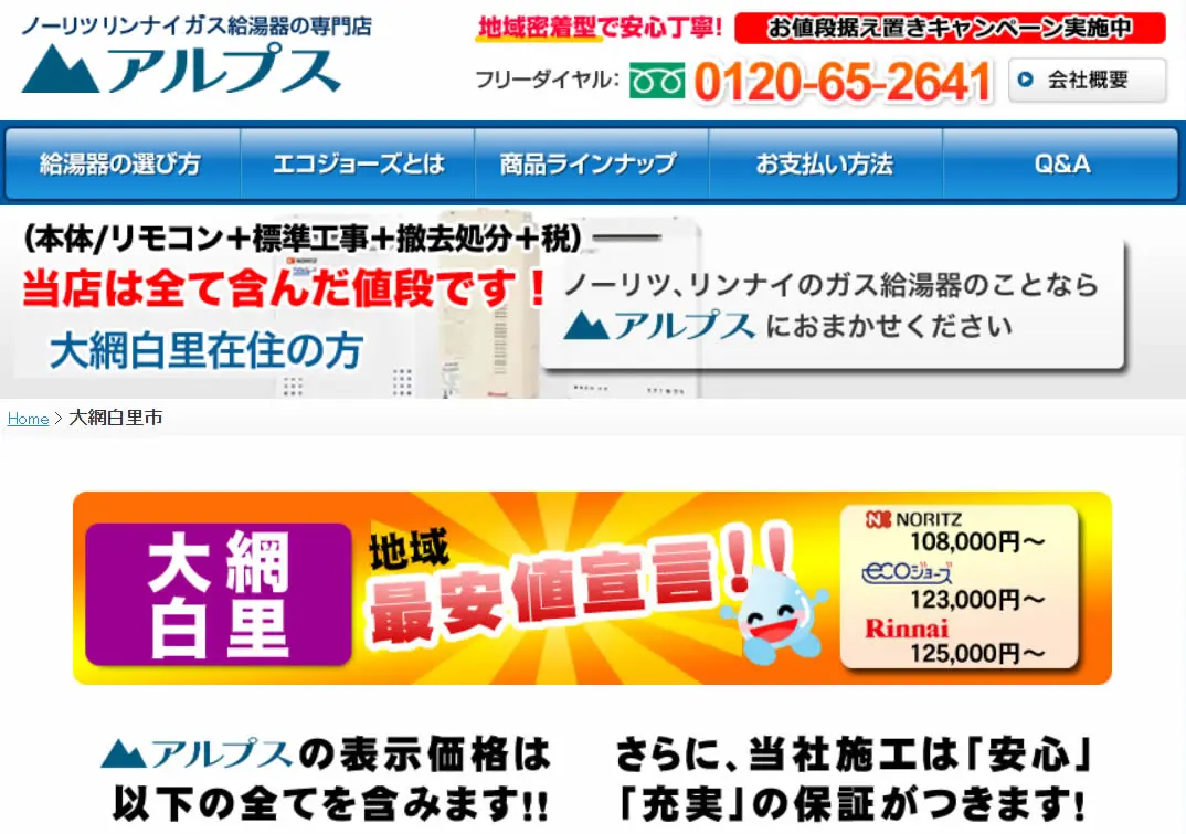 2025年5月にガス給湯器174機種の価格を平均17,035円値下げしており、交渉なしでの低価格を強みとしています。