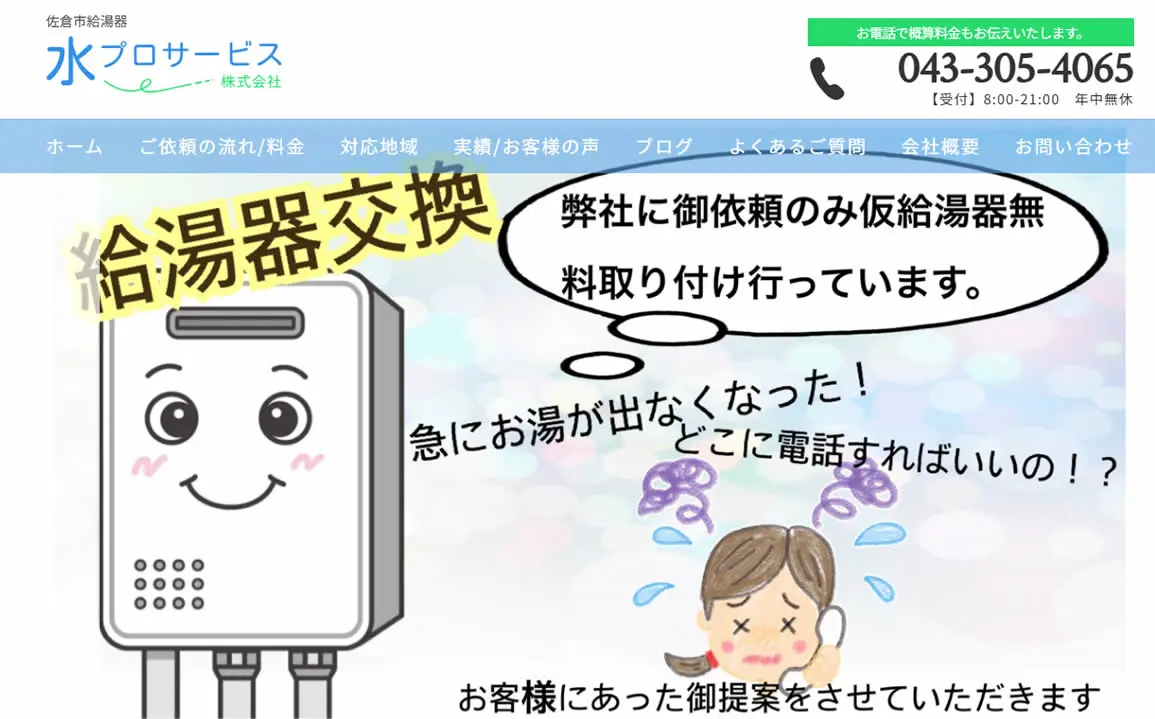ガス給湯器が最大92%オフになるので、工事費用を抑えたい方に最適です。千葉県全域に対応しており、即日対応が可能なので、「給湯器にエラーコードが出た」などのトラブルも迅速に解決できます。