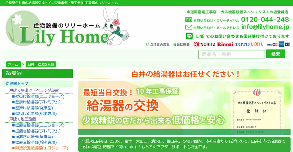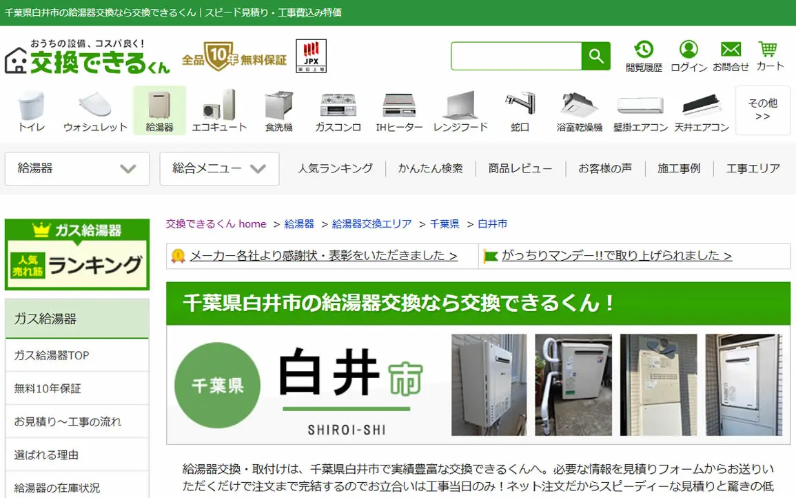 2025年5月にガス給湯器174機種の価格を平均17,035円値下げしており、交渉なしでの低価格を強みとしています。