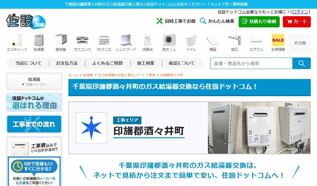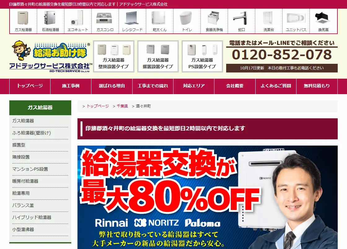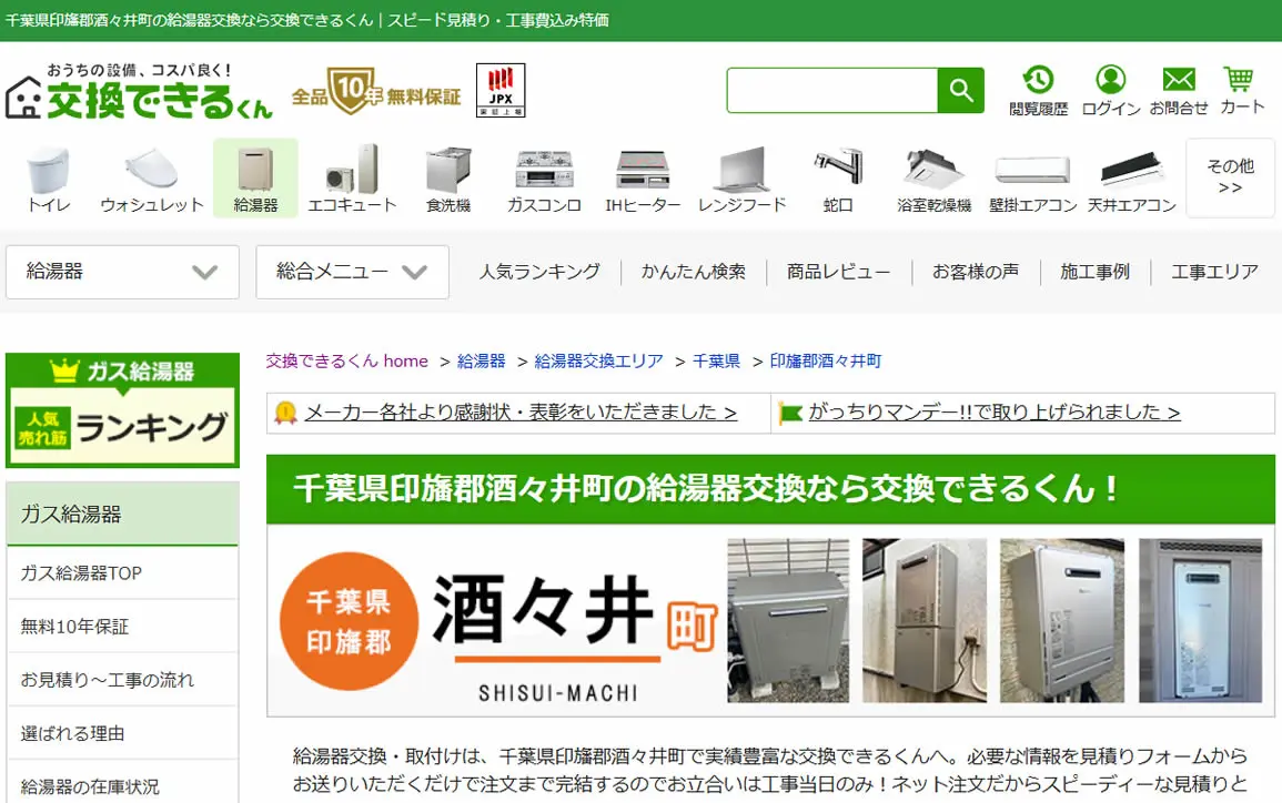 2025年5月にガス給湯器174機種の価格を平均17,035円値下げしており、交渉なしでの低価格を強みとしています。