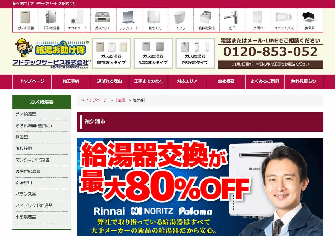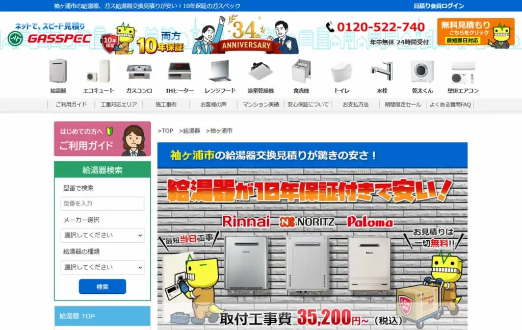 2025年5月にガス給湯器174機種の価格を平均17,035円値下げしており、交渉なしでの低価格を強みとしています。