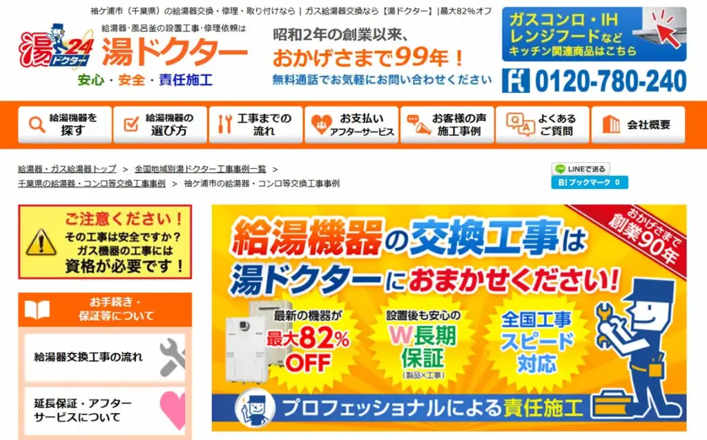 ガス給湯器が最大92%オフになるので、工事費用を抑えたい方に最適です。千葉県全域に対応しており、即日対応が可能なので、「給湯器にエラーコードが出た」などのトラブルも迅速に解決できます。