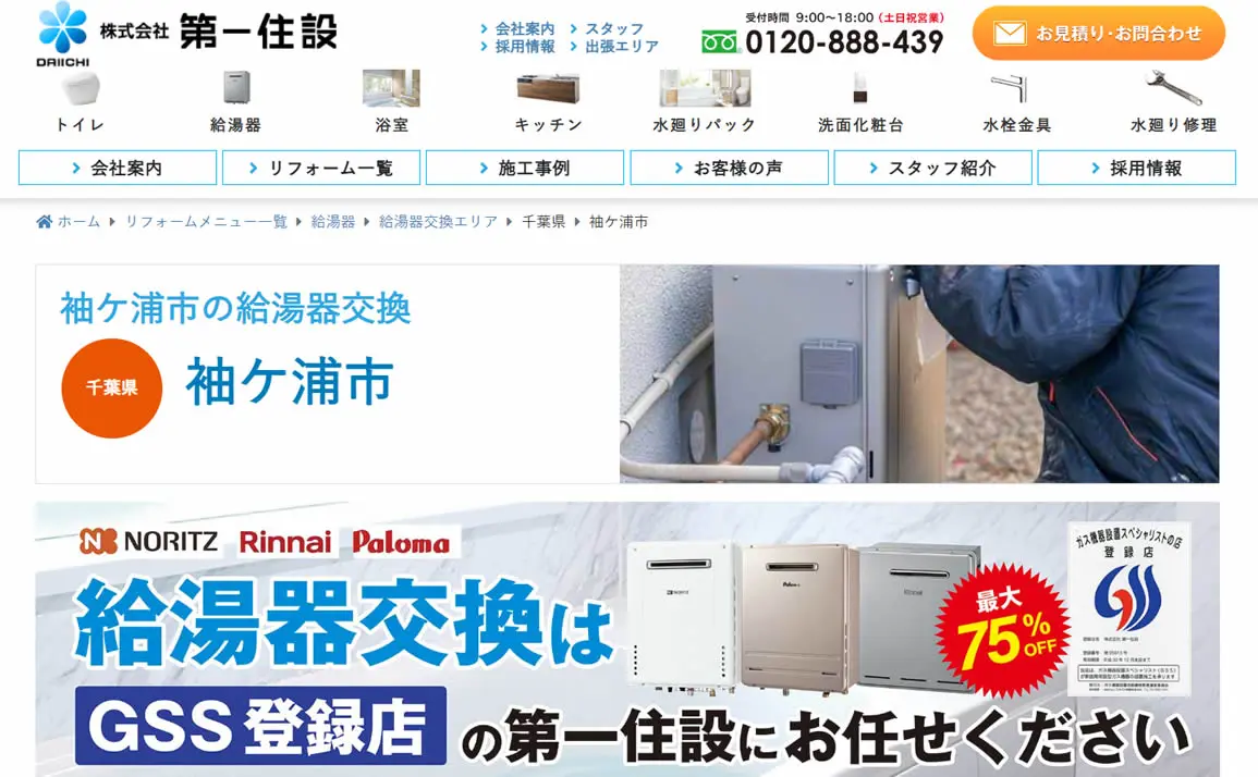 給湯器三大メーカーのリンナイ・ノーリツ・パロマの正規販売店なので、給湯器交換が初めての方でも安心して依頼できます。