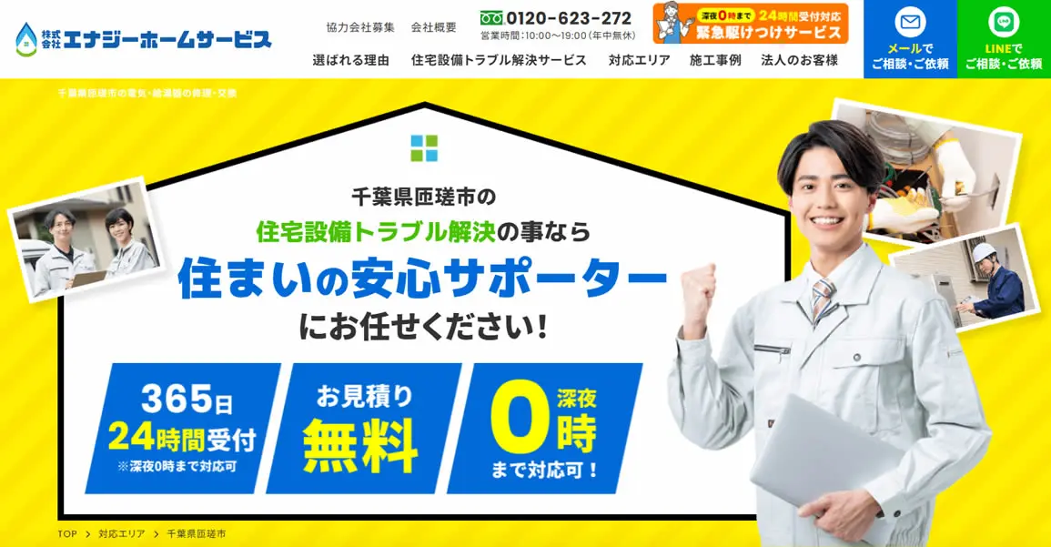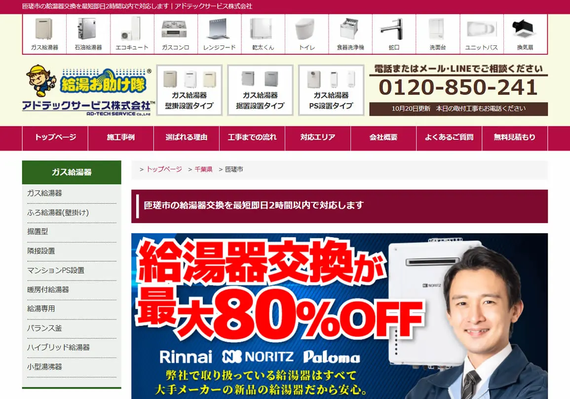 ガス給湯器が最大92%オフになるので、工事費用を抑えたい方に最適です。千葉県全域に対応しており、即日対応が可能なので、「給湯器にエラーコードが出た」などのトラブルも迅速に解決できます。