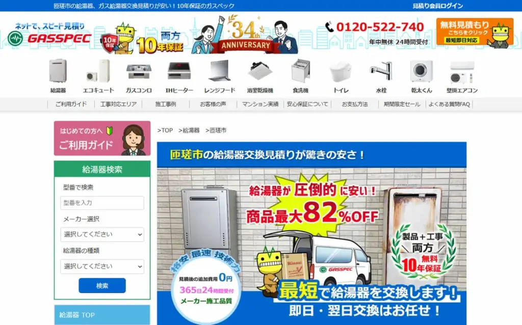 2025年5月にガス給湯器174機種の価格を平均17,035円値下げしており、交渉なしでの低価格を強みとしています。
