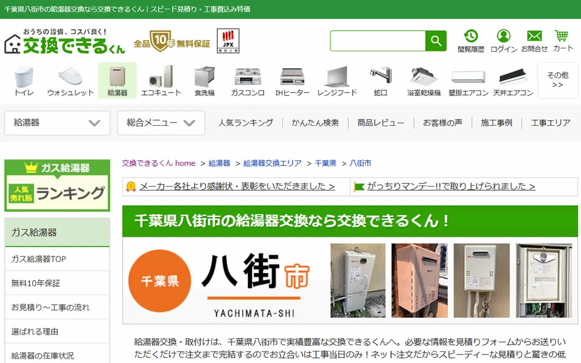 2025年5月にガス給湯器174機種の価格を平均17,035円値下げしており、交渉なしでの低価格を強みとしています。