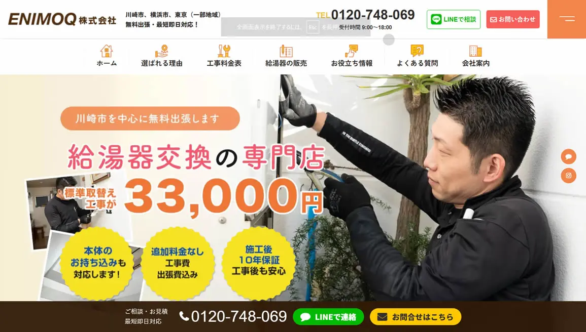 電話、WEB問わず見積もり受付は24時間365日対応。電話なら最短30分で訪問可、即日施工も可能なので、「給湯器のお湯が出ない」といった緊急性の高いトラブル時に頼りになるでしょう。