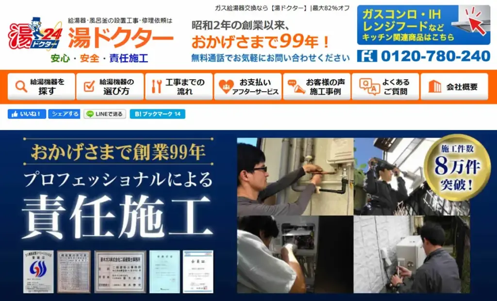 2025年5月にガス給湯器174機種の価格を平均17,035円値下げしており、交渉なしでの低価格を強みとしています。