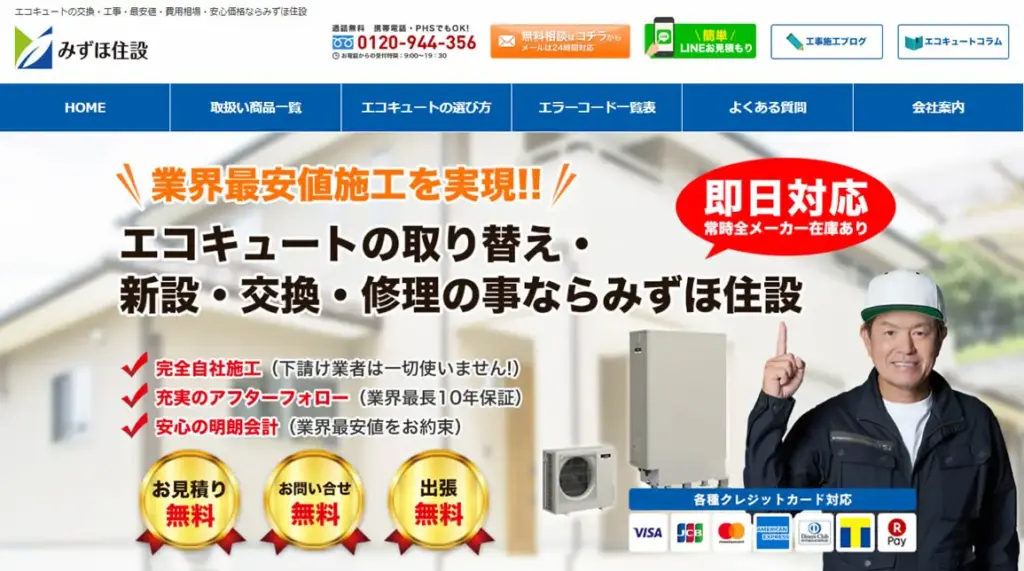 給湯器駆けつけ隊は、株式会社ミズテックが運営する、給湯器やエコキュート交換の専門業者です。