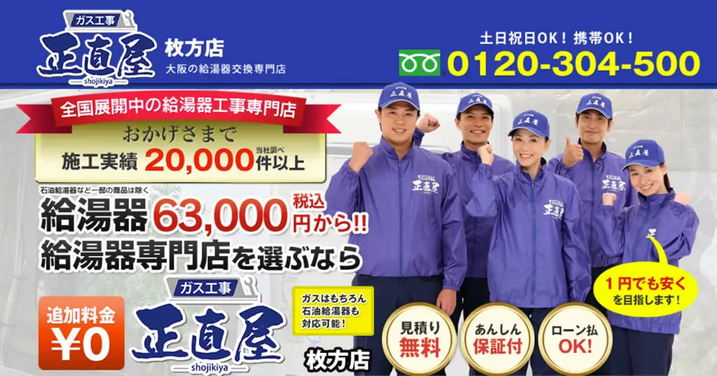 保証は有償が基本のため、スピード重視なら専門業者が向いています。ガス・電気を大阪ガスで契約中の方や、割引・長期保証を重視する方におすすめです。