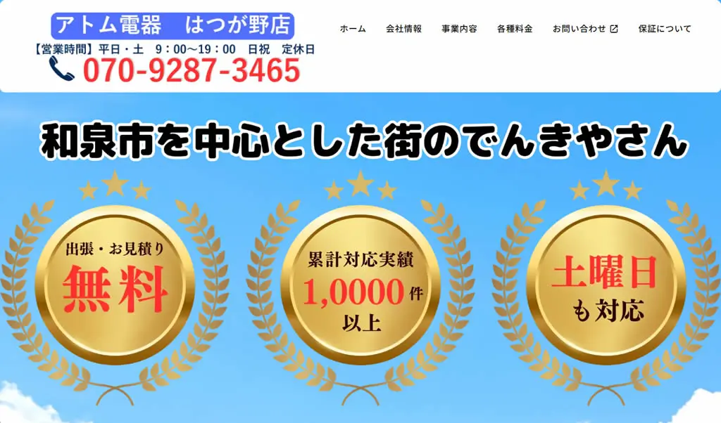 | 対応エリア | 大阪市・豊中市・池田市・吹田市・高槻市・守口市・枚方市・茨木市・八尾市・寝屋川市・大東市・箕面市・柏原市・門真市・摂津市・東大阪市・四條畷市・交野市・堺市・岸和田市・泉大津市・貝塚市・泉佐野市・富田林市・河内長野市・松原市・和泉市・羽曳野市・高石市・藤井寺市・泉南市・大阪狭山市・阪南市・島本町・忠岡町・熊取町・田尻町・岬町・太子町・河南町・豊能町・能勢町 |