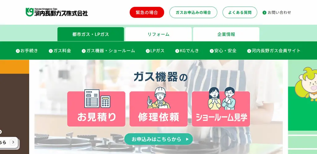 主な対応サービス給湯器・ガス機器の設置・修理・交換、ガスの供給