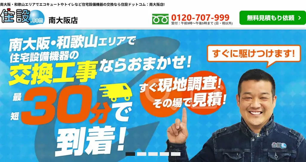 | 対応エリア | 大阪市・豊中市・池田市・吹田市・高槻市・守口市・枚方市・茨木市・八尾市・寝屋川市・大東市・箕面市・柏原市・門真市・摂津市・東大阪市・四條畷市・交野市・堺市・岸和田市・泉大津市・貝塚市・泉佐野市・富田林市・河内長野市・松原市・和泉市・羽曳野市・高石市・藤井寺市・泉南市・大阪狭山市・阪南市・島本町・忠岡町・熊取町・田尻町・岬町・太子町・河南町・豊能町・能勢町 |