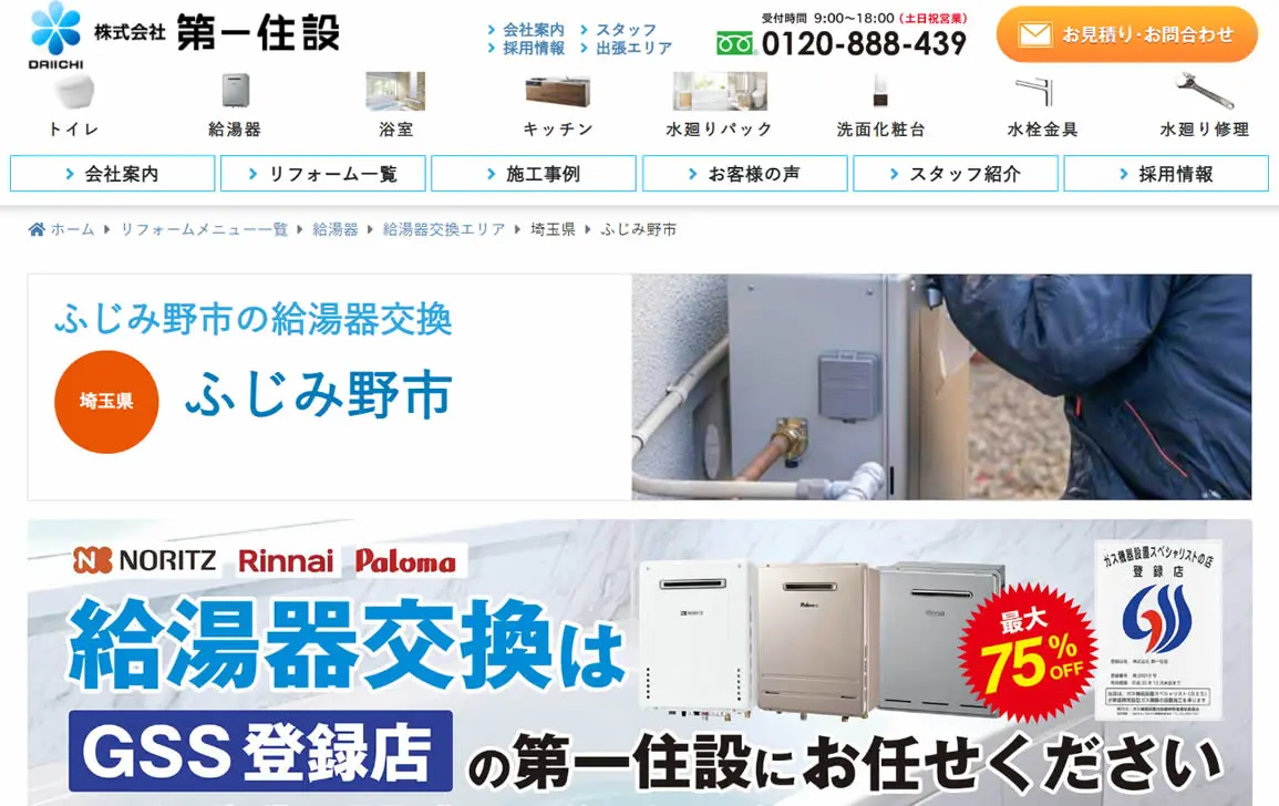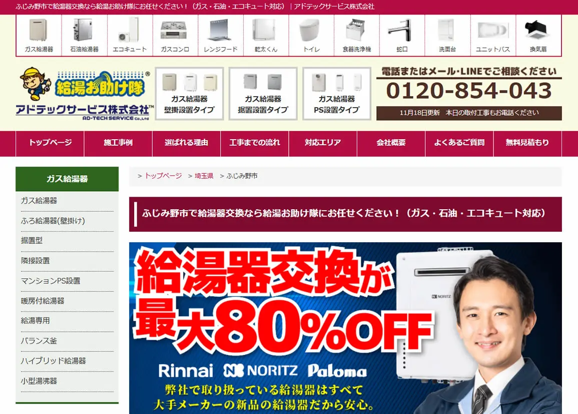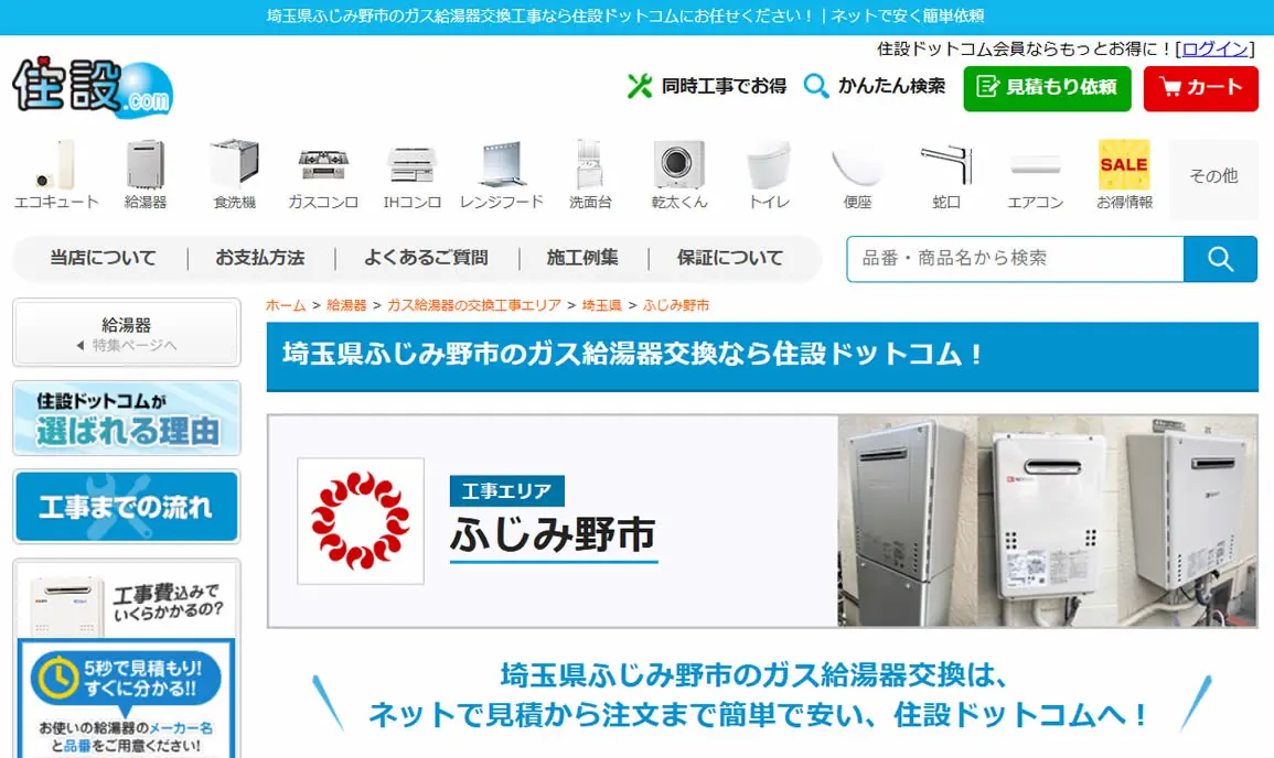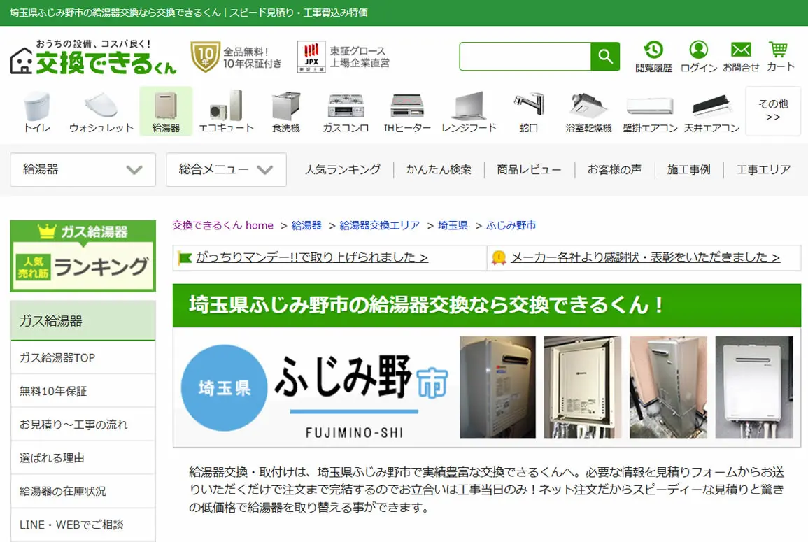 2025年5月にガス給湯器174機種の価格を平均17,035円値下げしており、交渉なしでの低価格を強みとしています。