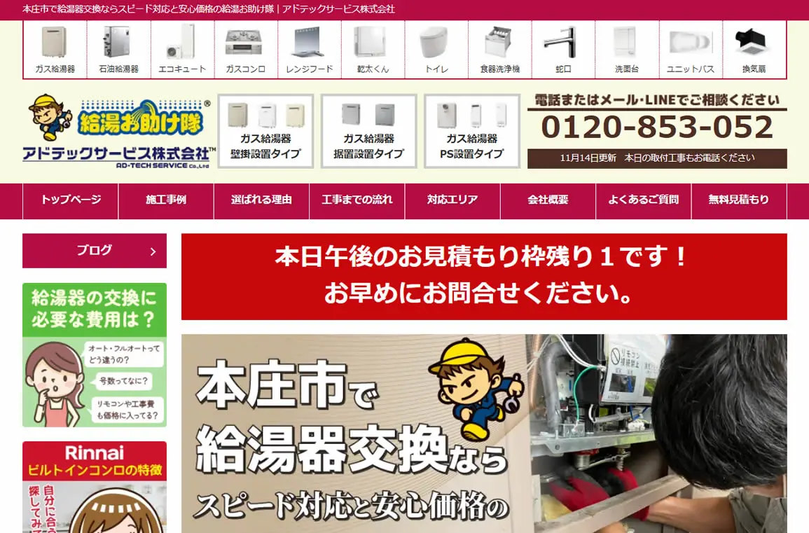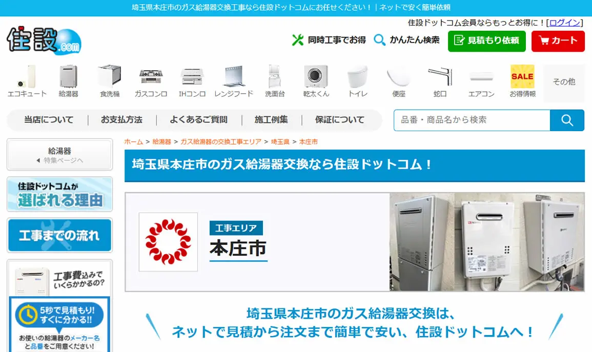 2025年5月にガス給湯器174機種の価格を平均17,035円値下げしており、交渉なしでの低価格を強みとしています。