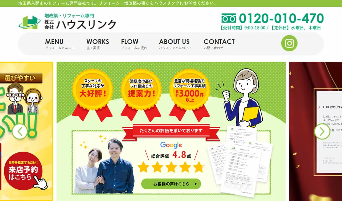 - 狭山市に営業所があり対応エリアは埼玉県全域