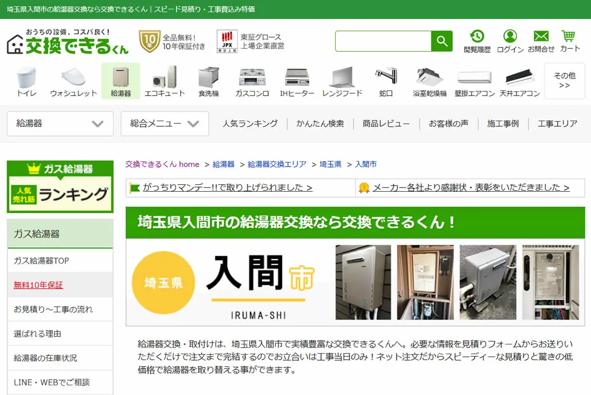 2025年5月にガス給湯器174機種の価格を平均17,035円値下げしており、交渉なしでの低価格を強みとしています。