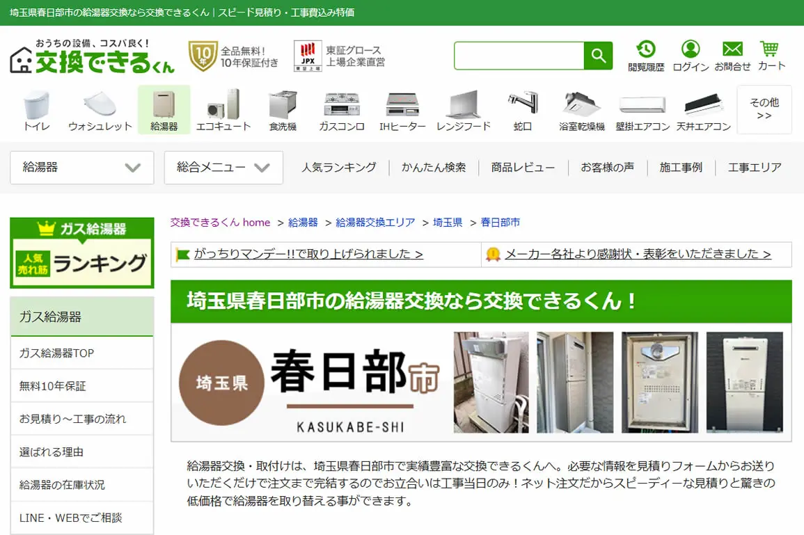 2025年5月にガス給湯器174機種の価格を平均17,035円値下げしており、交渉なしでの低価格を強みとしています。