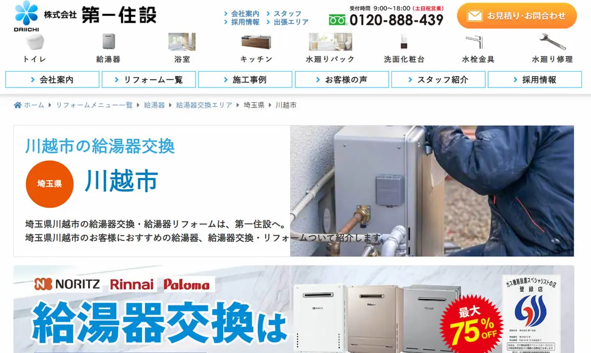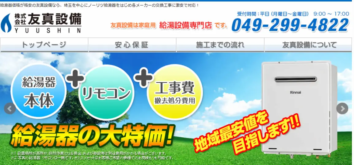 2025年5月にガス給湯器174機種の価格を平均17,035円値下げしており、交渉なしでの低価格を強みとしています。