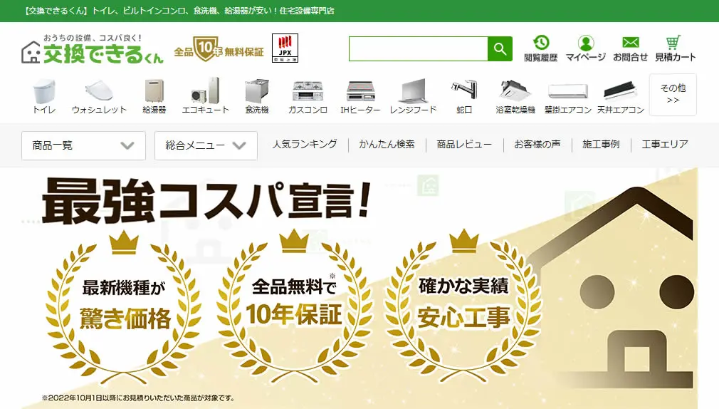 2025年5月にガス給湯器174機種の価格を平均17,035円値下げしており、交渉なしでの低価格を強みとしています。