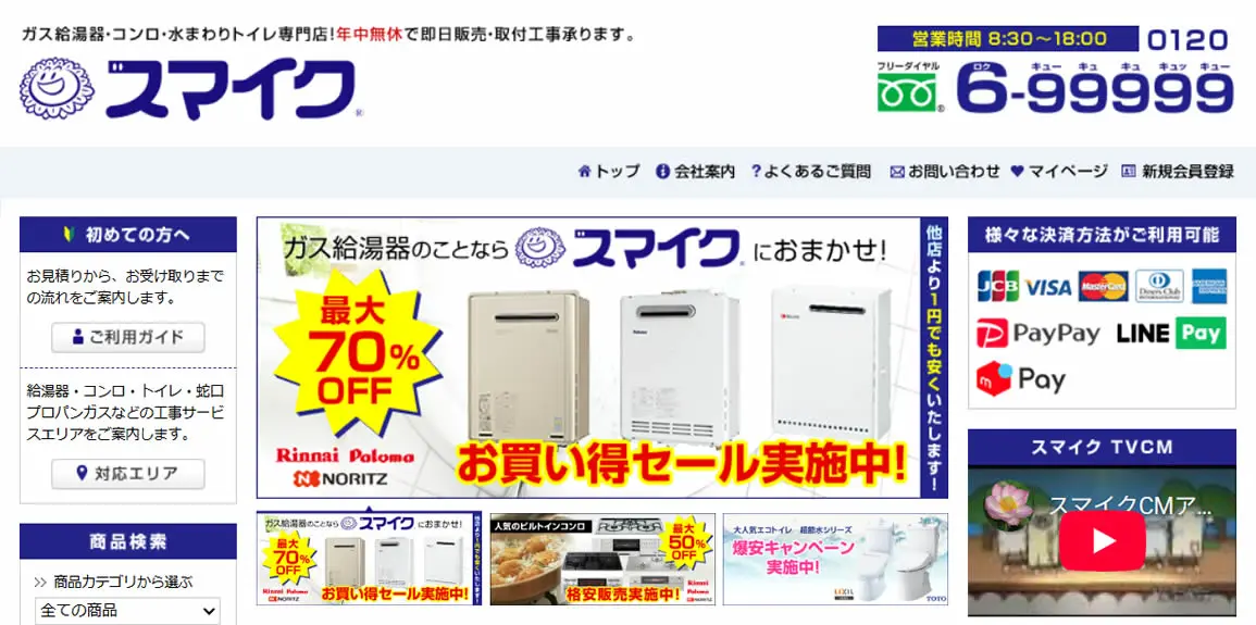 2025年5月にガス給湯器174機種の価格を平均17,035円値下げしており、交渉なしでの低価格を強みとしています。